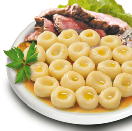 Kluski śląskie Bell Gusto to tradycyjne, mięciutkie kluski o charakterystycznym kształcie, wykonane z ziemniaków. Idealne jako dodatek do mięsnych dań lub samodzielne danie z masłem i zasmażką. Szybkie w przygotowaniu, smaczne i sycące — klasyka kuchni polskiej na Twoim stole.
