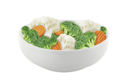 Bukiet jarzyn 3-składnikowy to mieszanka marchewki w plasterkach, kalafiora oraz brokułów. Produkt głęboko mrożony, gotowy do szybkiego przygotowania. Idealny jako zdrowy dodatek do dań lub baza do zup i sałatek.